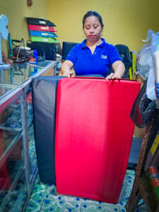 Durante la visita, se brindó acompañamiento técnico para avanzar en el proceso de gestión del crédito, orientado a fortalecer la producción, modernizar equipos y expandir la línea de productos elaborados en cuero.
